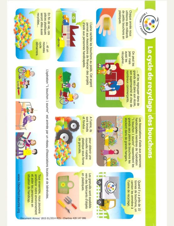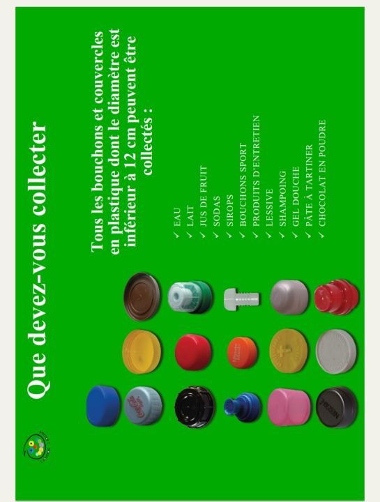 Gardez vos bouchons de plastique et déposez les dans les cartons prévus à cet effet à l'école, ou donnez les à vos enfants pour qu'ils les mettent eux-mêmes.